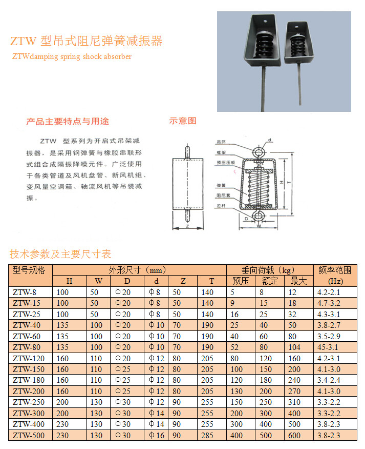 ZTW型吊式阻尼彈簧減振器
